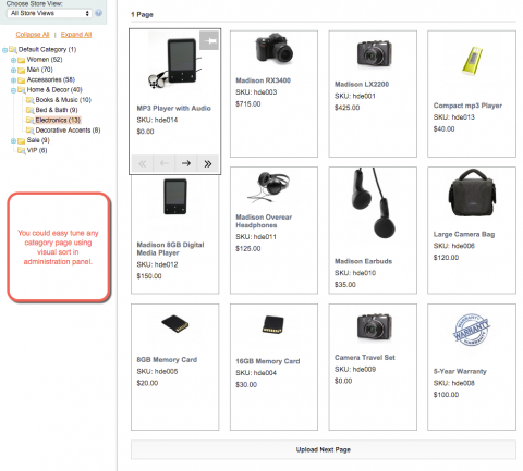 Visual Product Sorting is a Magento 1 product sorting extension that enables custom and manual Magento product sorting right from the admin panel of your web store.