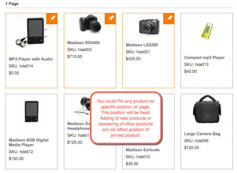 Any product can be pinned to its place permanently with the Pin Button.