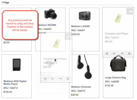 Magento sorting extension by NEKLO helps change the default product order and edit the number of items per page. Magento drag and drop functionality allows for trouble-free items moving within a web page.