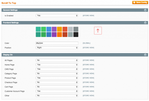 Find the basic settings on System > Configuration > Neklo > Scroll To Top.