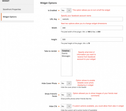 configurations of your Facebook Widget.